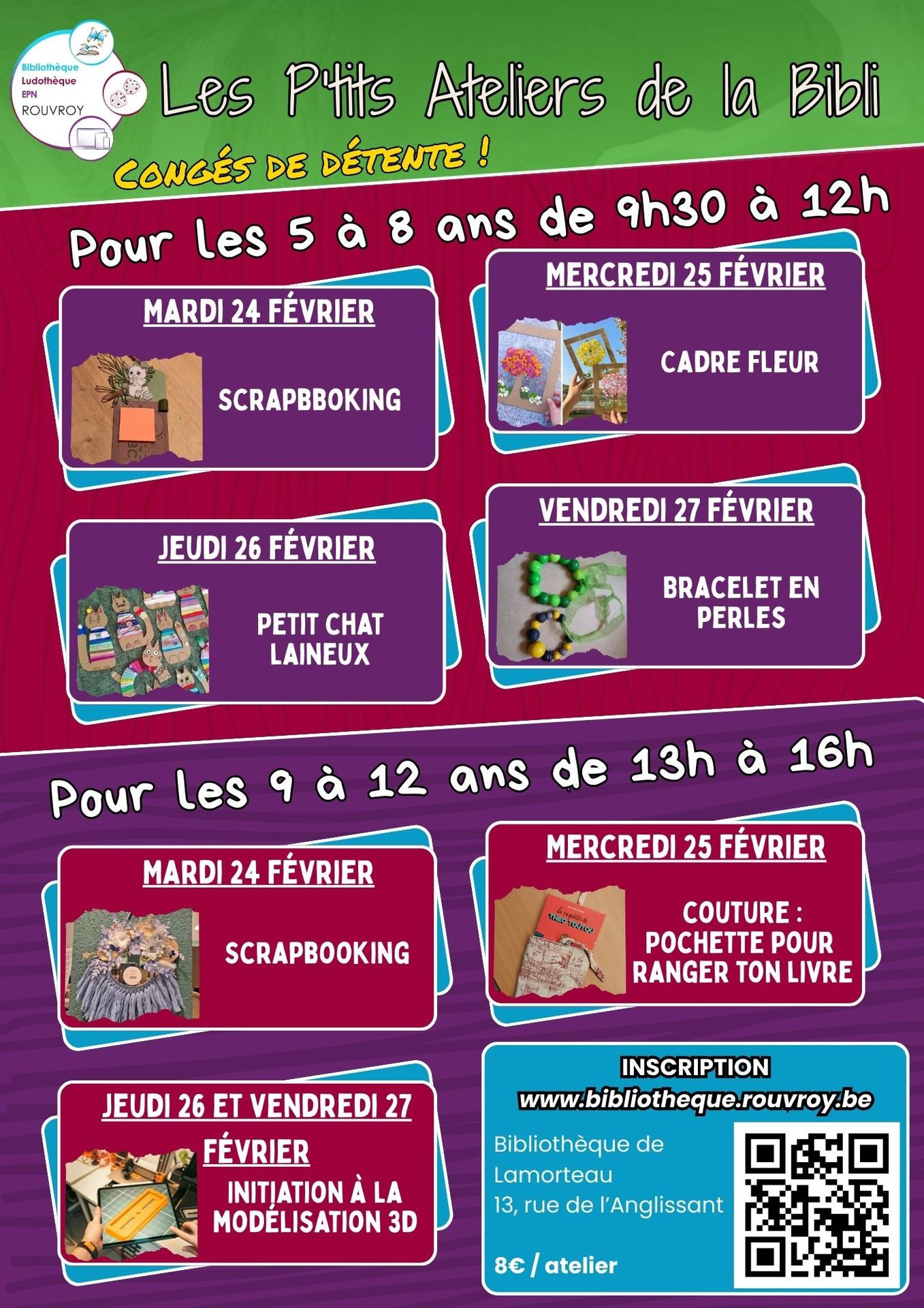 Les ateliers des congés de détente à la Bibliothèque de Lamorteau !